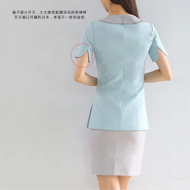 Light blue short sleeve blouses grey skirt Tibetan green short sleeve blouses light blue dress