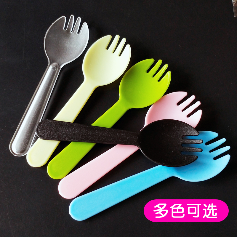 Disposable plastic cake fork spoon integrated small spoon fork fruit fork ice cream dessert spoon fork independent packaging