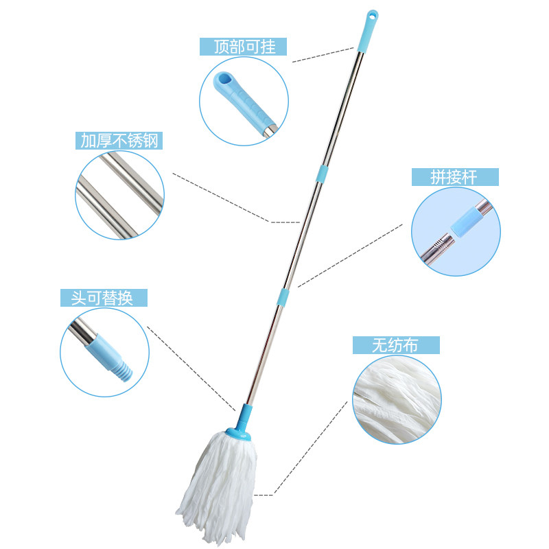 Household non-woven cloth flip-flops Stainless steel long handle water drag water absorption does not lose hair pier cloth drag Replaceable round head small mop