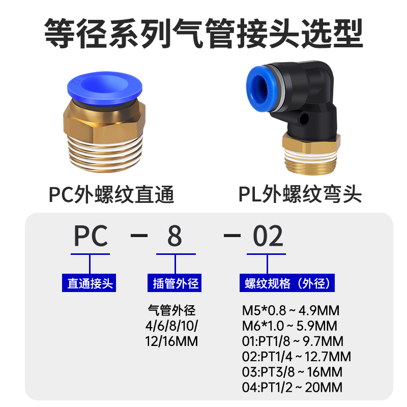 White PC threaded straight cylinder tracheojoint quick joint pneumatic hose insert copper M5-4-6-8-10-12-Taobao