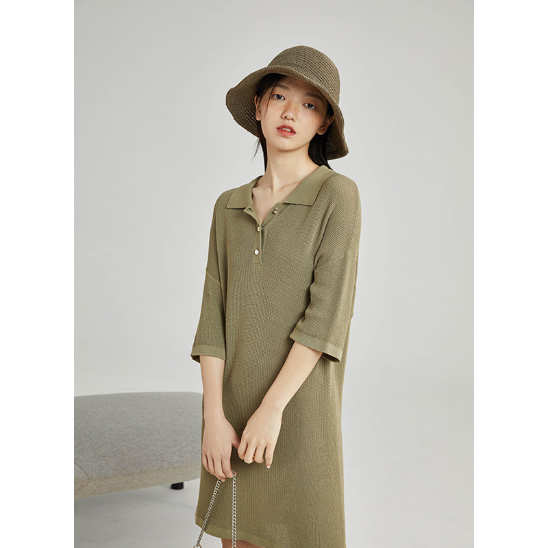 Self-fitting small Polo collar dress women's summer new style all-match loose, thin and tall 145 short skirt