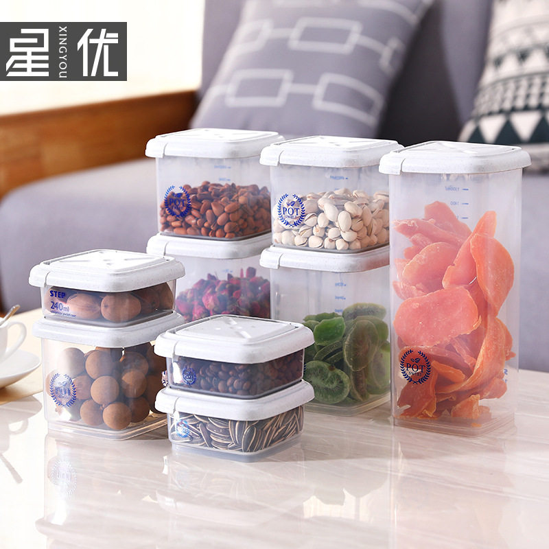 Multi-functional new white nine dried fruits and miscellaneous grains classification storage dustproof can be superimposed refrigerator food grade storage box
