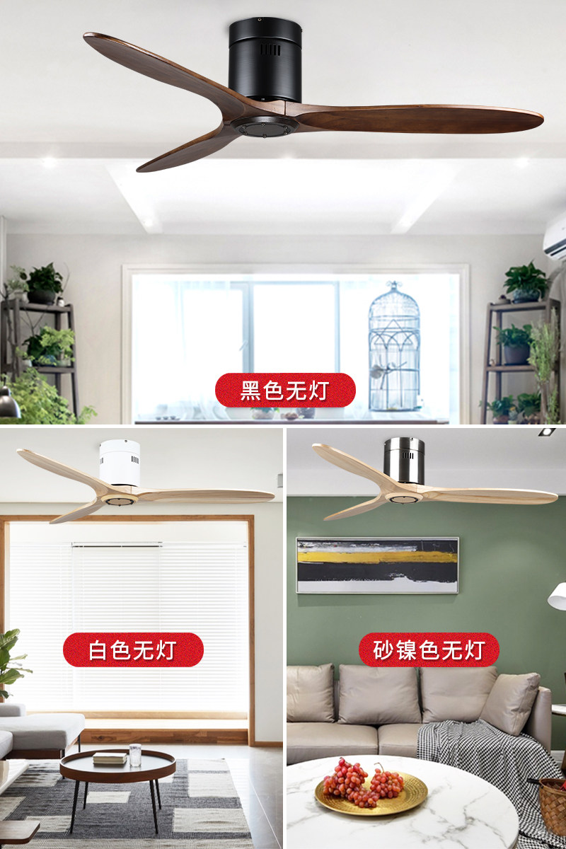Nordic Dining Room Living Room Solid Wood Suction Top Ceiling Ceiling Fan Light Brief No Light Ceiling Fan Home Frequency Conversion Live Fan Chandelia