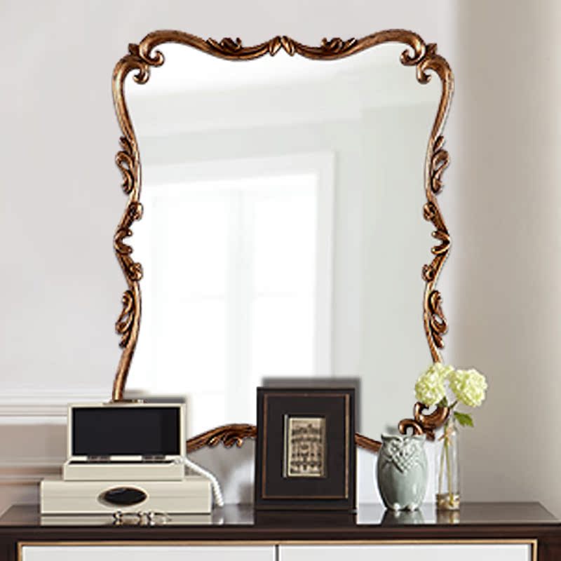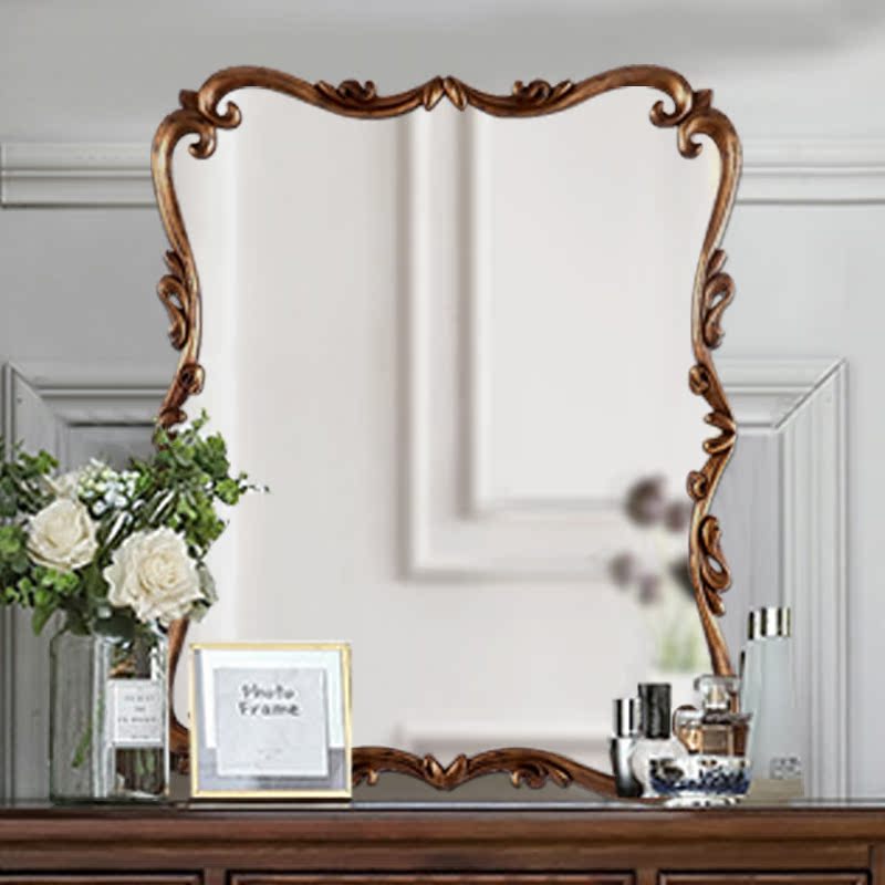 North American HOME Neoclassical Decorative Mirror Genguan Makeup Mirror Subwall Decoration Hanging Mirror Bathroom Mirror Handmade Wood Carved Mirror-Taobao