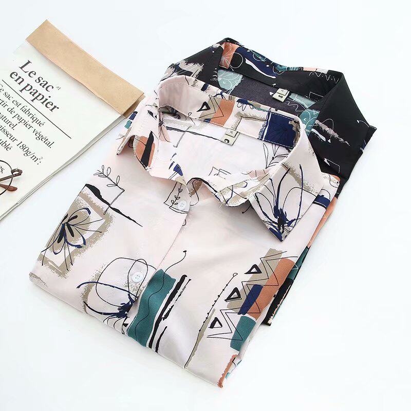 Spring clothing new middle aged mother blouses big sizes loose digital printing medium long version of snowspun shirts Korean version 40-year-old shirt