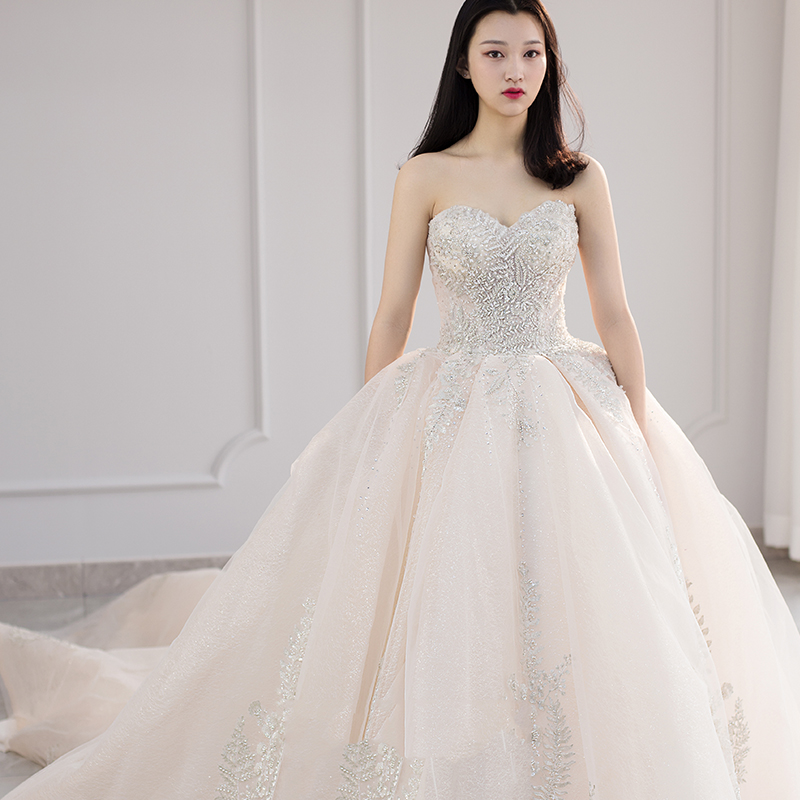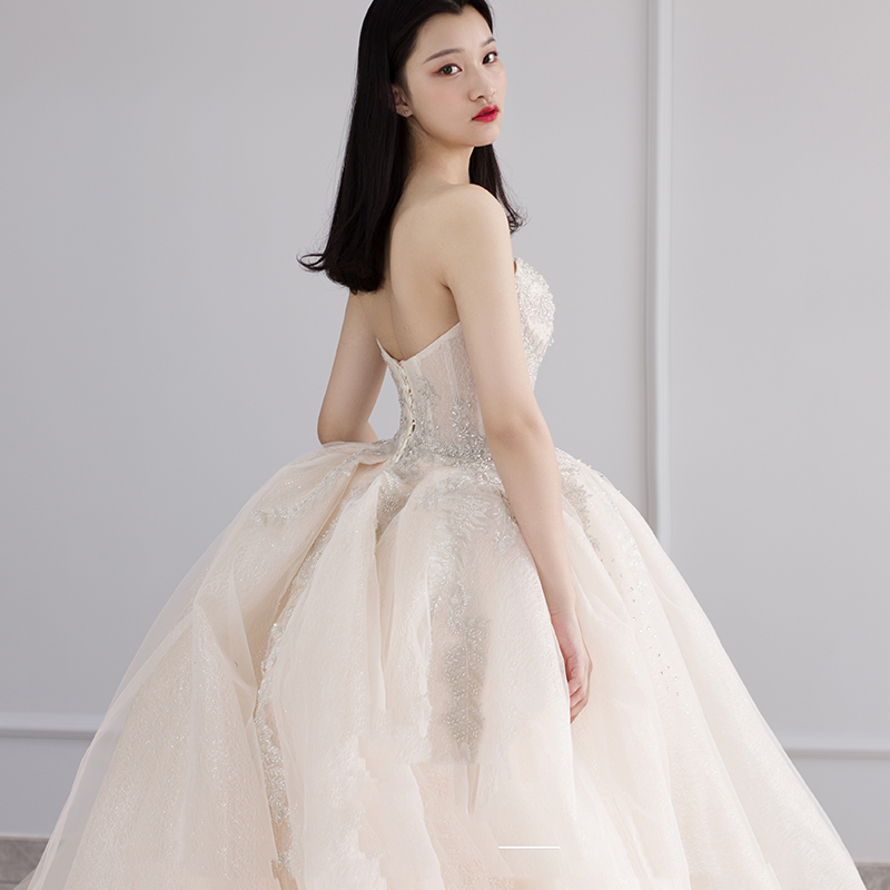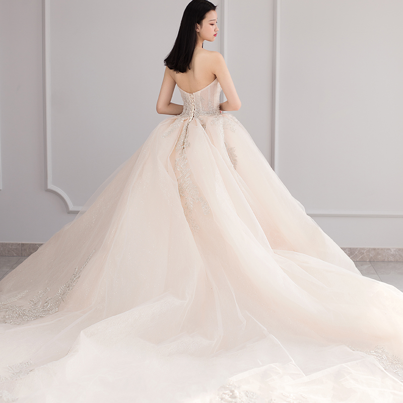 Main light wedding dress 2021 new bride bandeau thin simple large tail shaking sound net red French high-end women