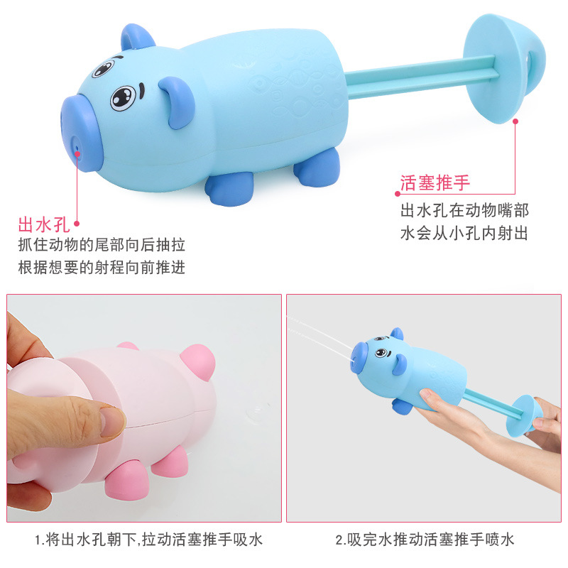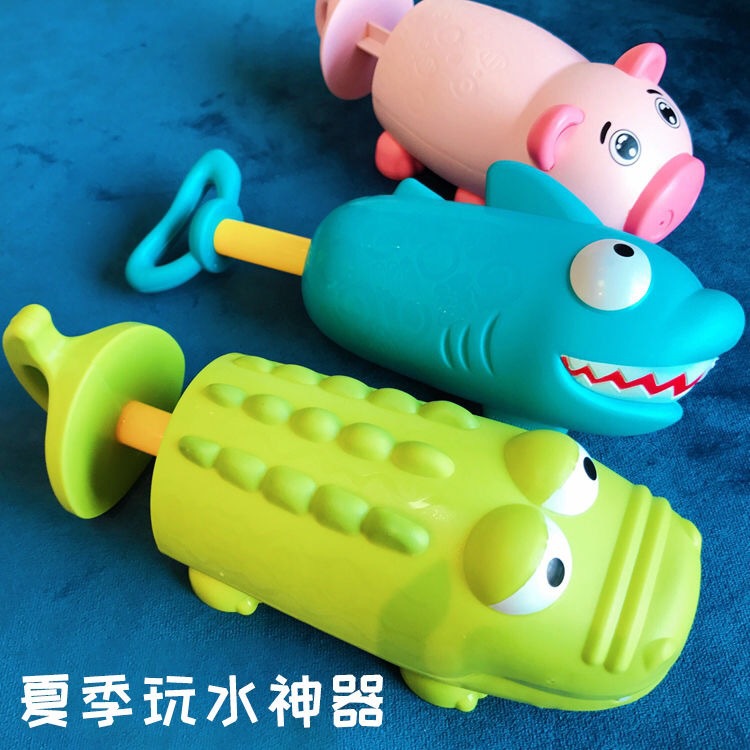 Children's bathroom bath green crocodile water gun toy pull-out cartoon shark pig summer beach water cannon