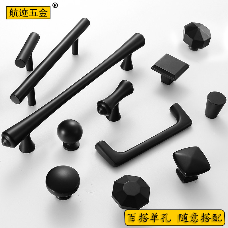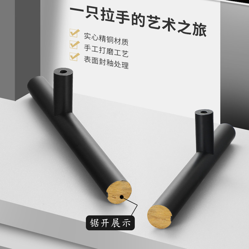 Black American closet door pure copper handle Nordic shoe cabinet drawer single hole brass cabinet door handle all copper hand