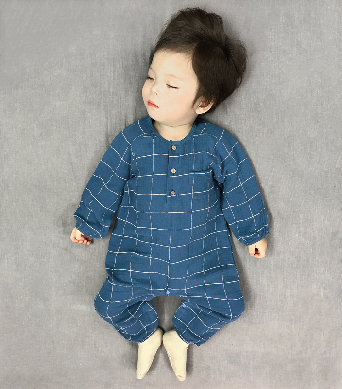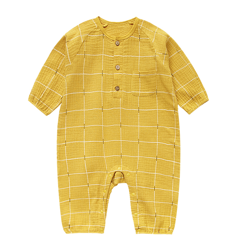 Baby clothes Long sleeves thin piece of gauze checkered Korean version of baby baby climbing clothes for baby Even body clothes