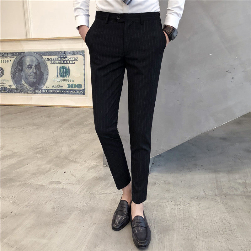 Summer display slim fit with small foot pants male and Korean version for body-free casual 90% Pants Inglées Striped Youth Western Pants-Taobao