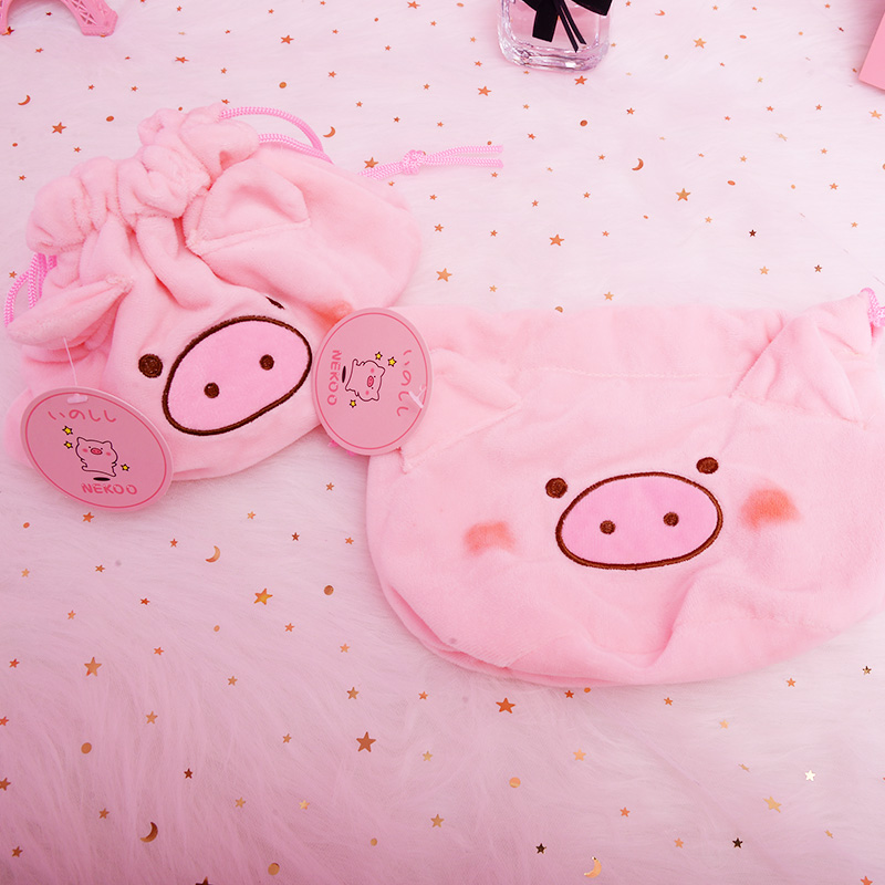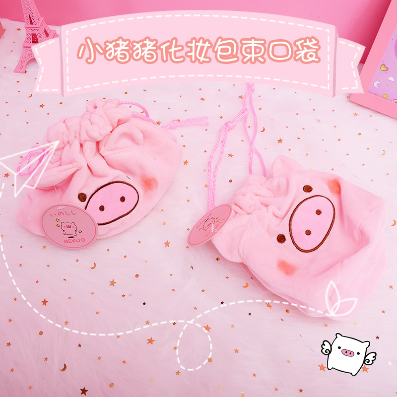 Cute Plush Small Pig Nose Bunch Pocket Powder Girl Drawing Rope Cashier Bag Pendant Zero Wallet Portable Makeup Bag