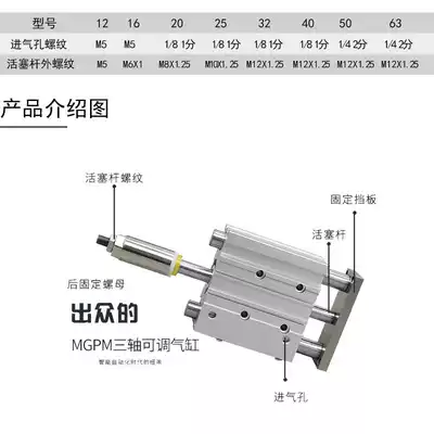 MGPM Three-rod three-axis adjustable stroke cylinder TCMJ25L 32 40X50 75 100 125 150 175S
