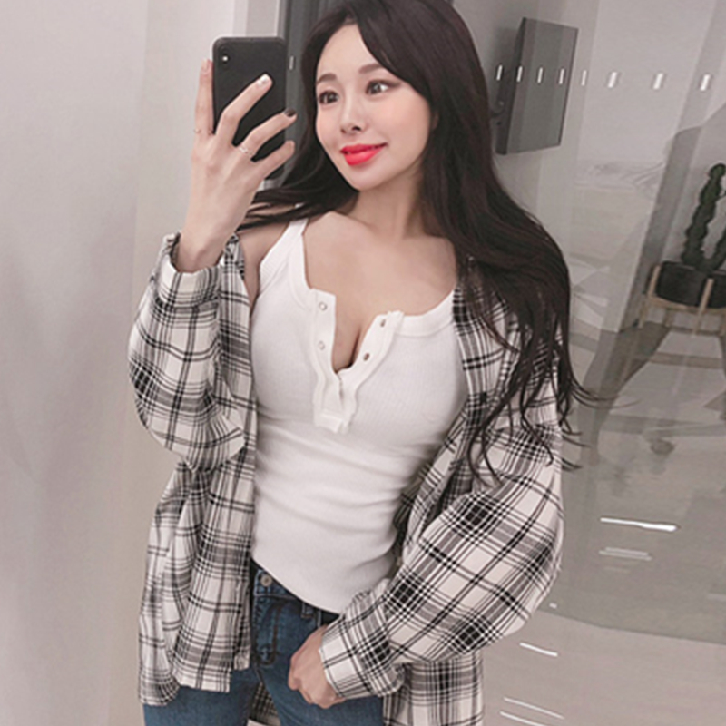 2022 spring and summer furnishing with a careful machine sexy tie button semi-open collar display slim fit outside wearing a harness vest woman