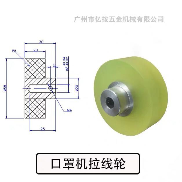 Mask machine pull wire wheel pull rope wheel wire wheel wire wheel trolley PU mask machine accessories aluminium core rubber roller manufacturer direct