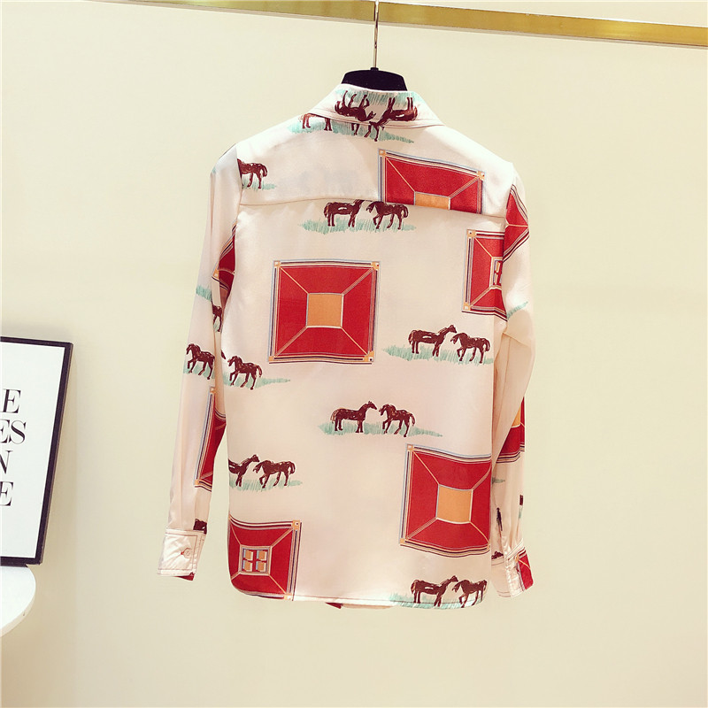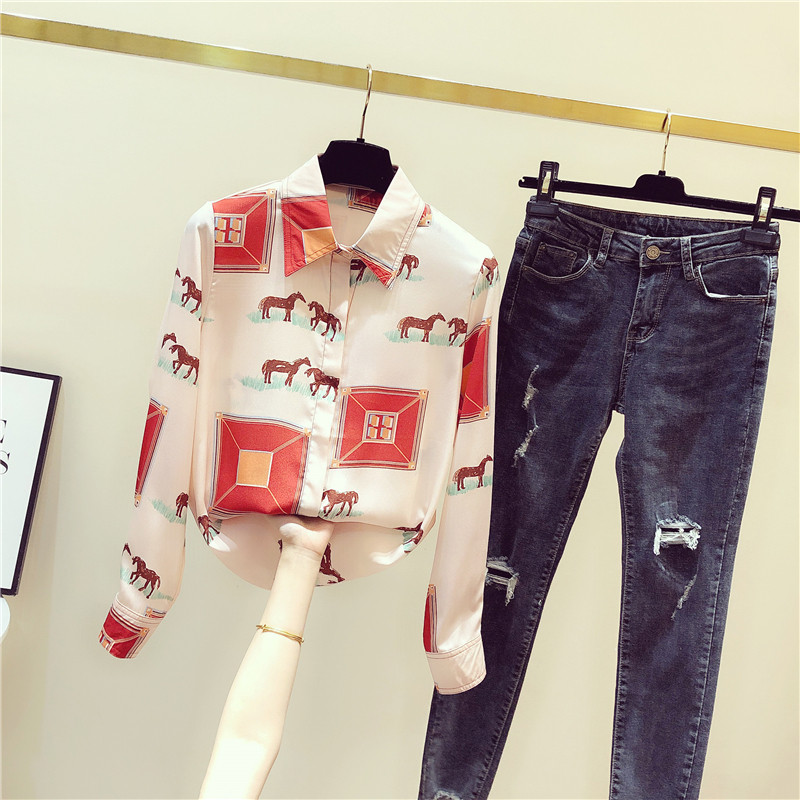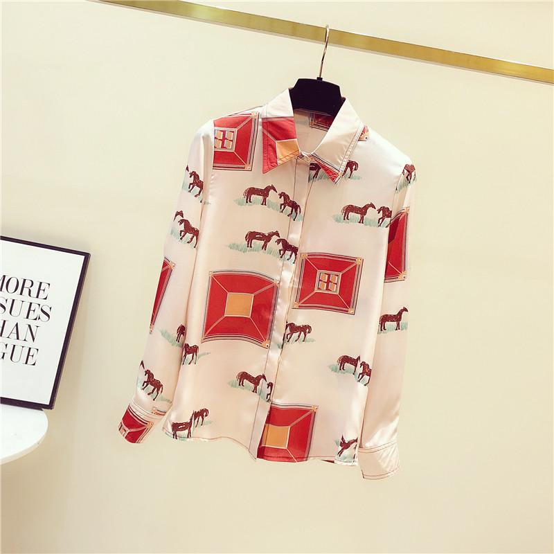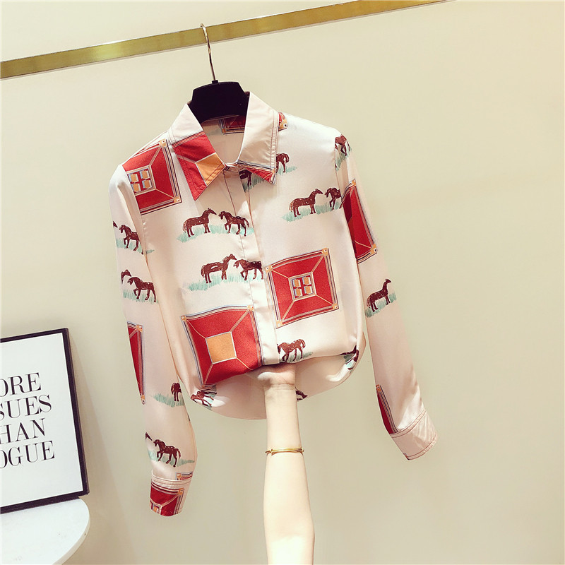 Korean Spring and Autumn New Professional Chiffon Shirt Women's Design Sense Small Fashion Western Style Printed Bottom Shirt
