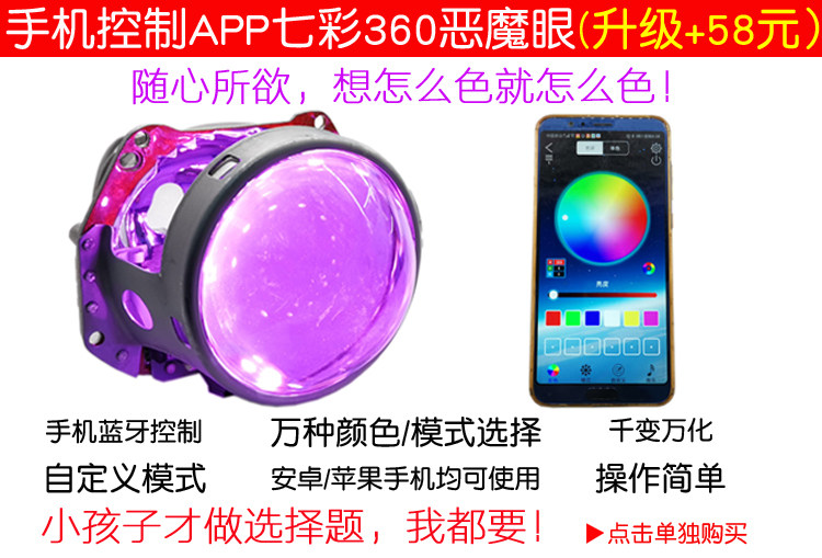 Motorcycle 3 inch sea 5 double light lens modified xenon lamp Q5 angel app colorful devil eye LED xenon lamp