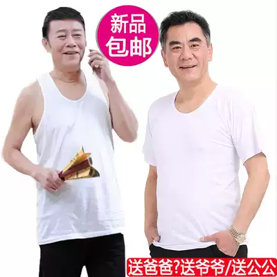 Summer men's hurdle vest middle-aged and elderly cotton plus fat extra sweat cloth sling underwear Old Man shirt white short sleeve