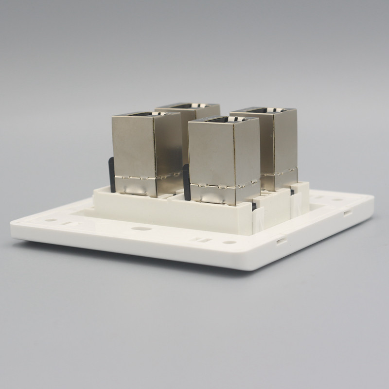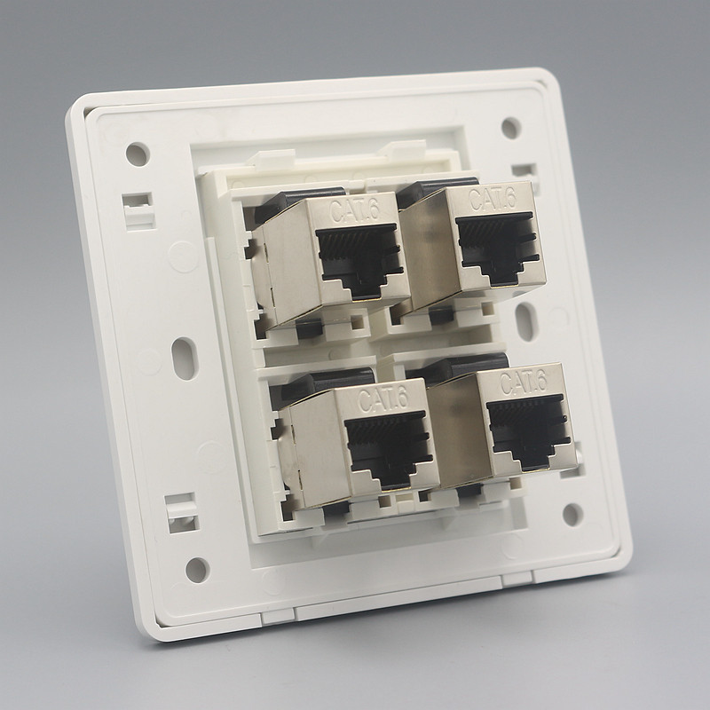 Type 86 Four-mouth straight-through six-type shielded network route socket contains one thousand trillion computer module 4-bit Internet straight insertion panel