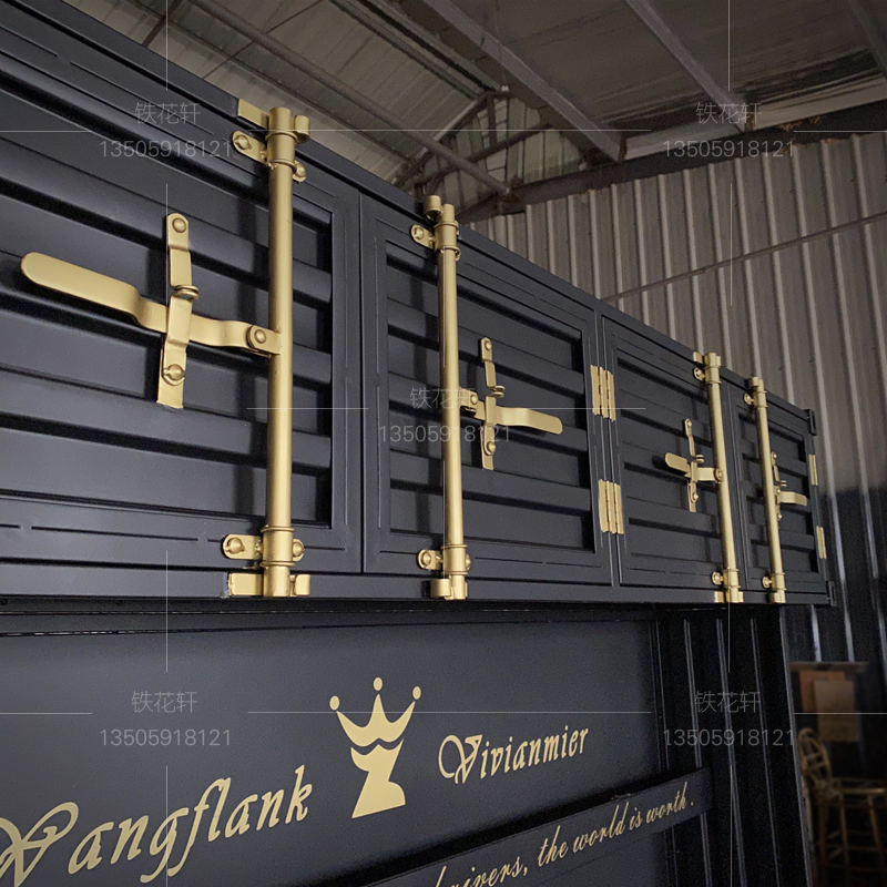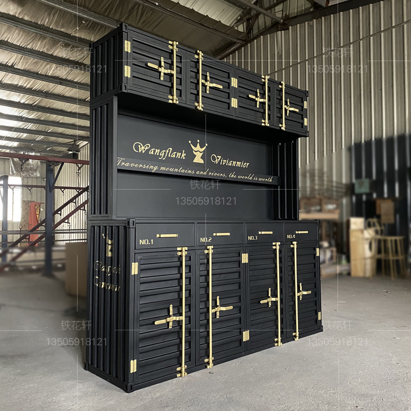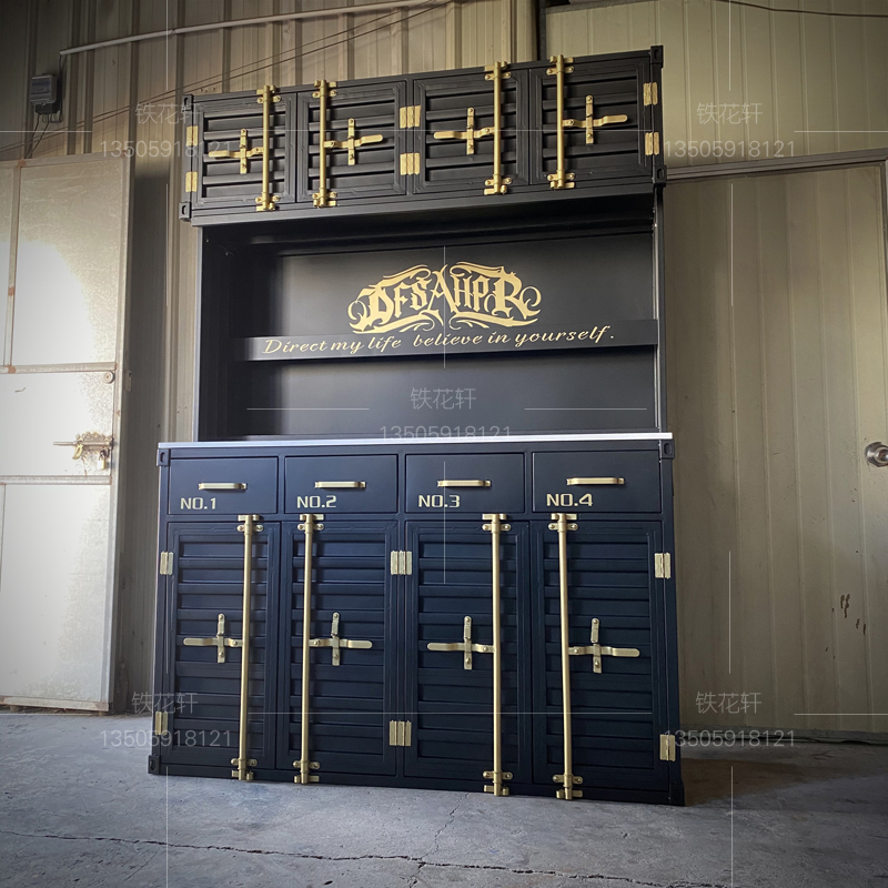 Industrial style retro bookcase wine cabinet display cabinet American dining room bar container wrought iron cabinet storage cabinet vertical cabinet