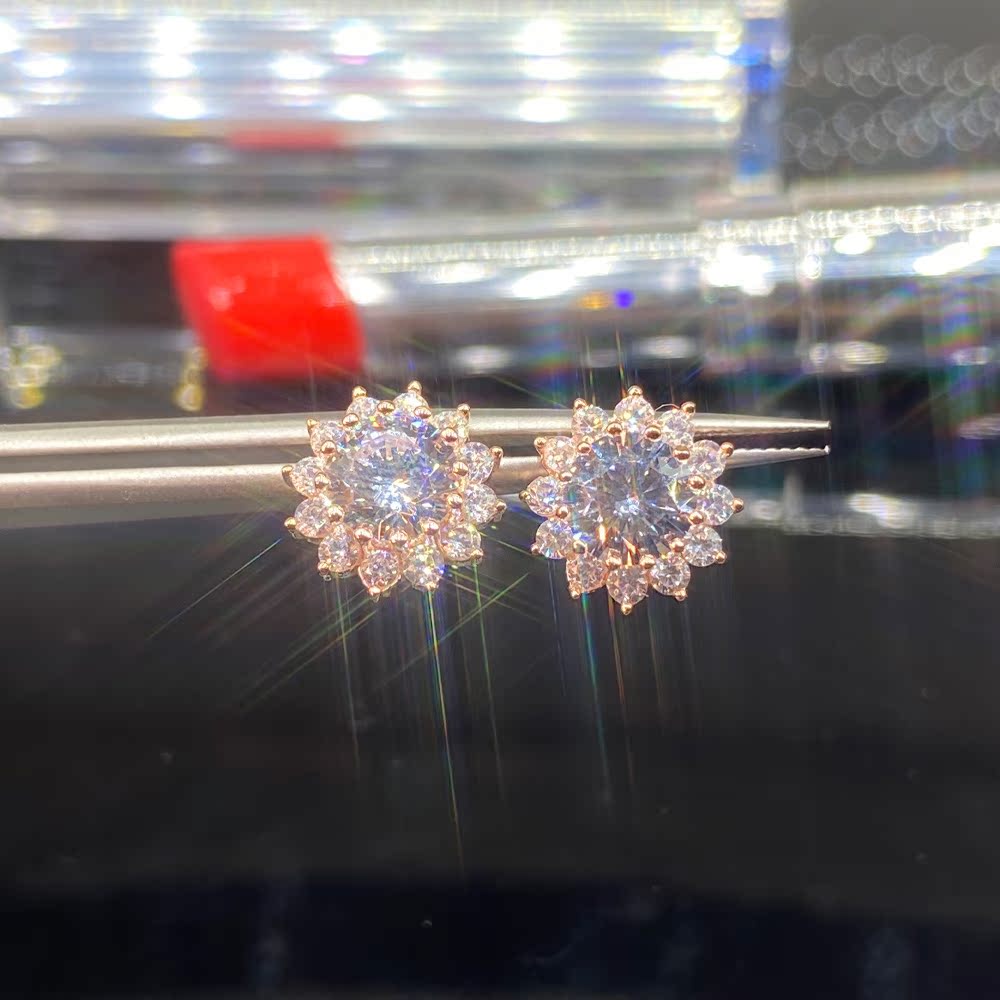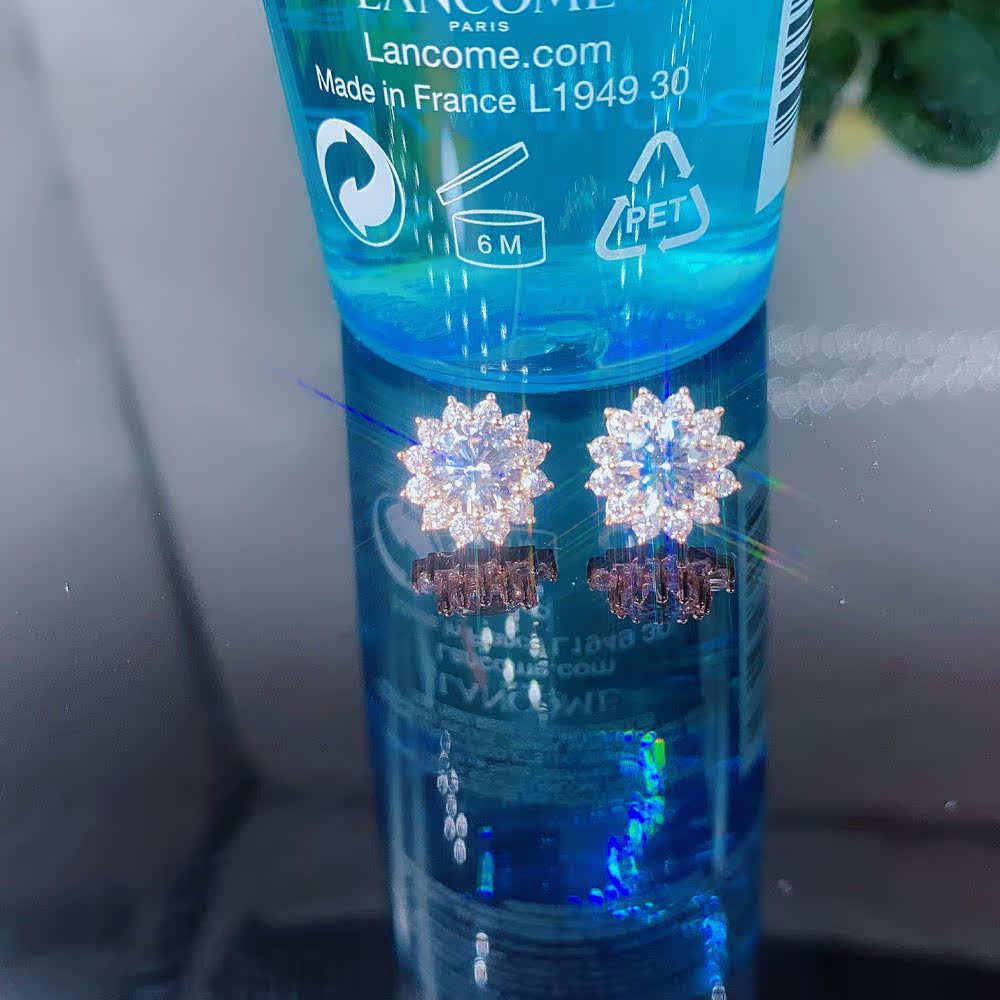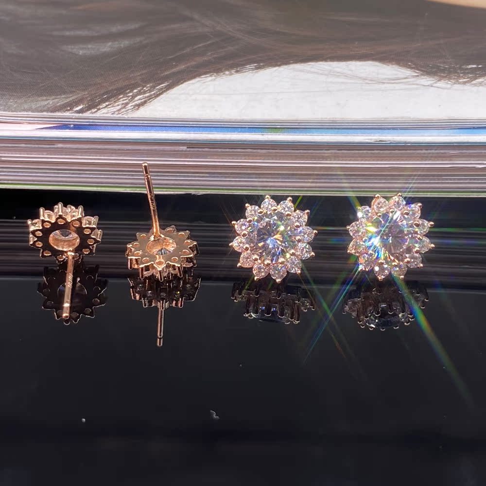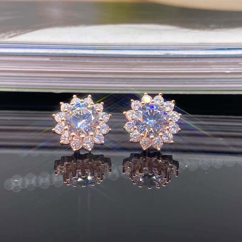 18K Rose Golden Mosanstone ear nails temperament sun flower earring AU 750 color gold crala snowflake ear trim super flashing woman