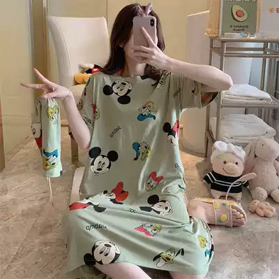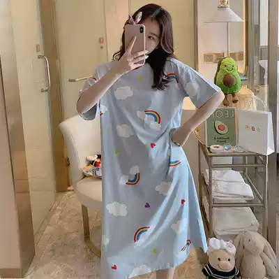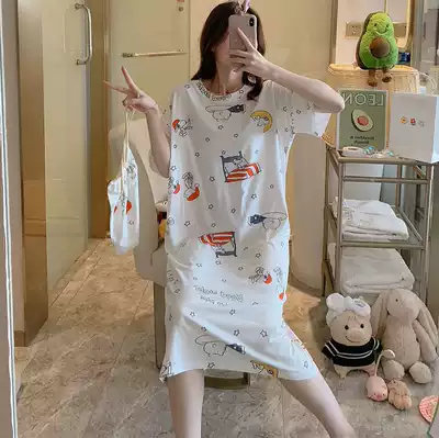 Nightdress women Summer cotton short sleeve cute strawberry big size fat mm loose pregnant women's pajamas skirt summer thin lady