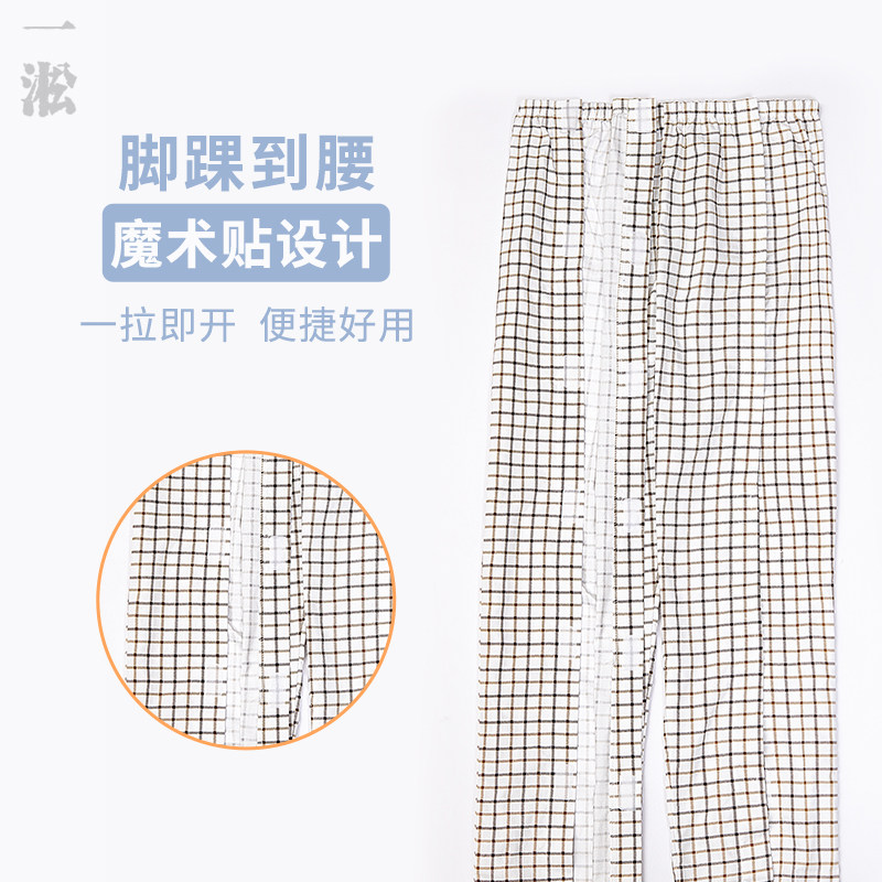 Medical chlorine-resistant bleaching cotton easy to wear and take off nursing clothes paralyzed bed-ridden fracture patient clothes elderly one-piece hospital clothes