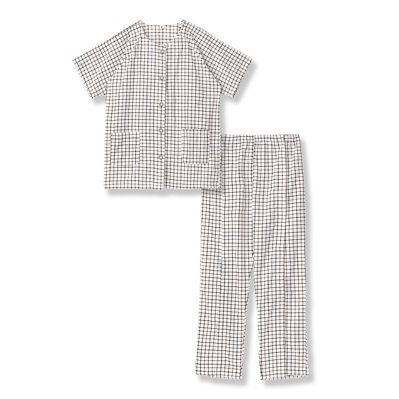 Male Coffee grid sticking suit male Coffee grid pasting short-sleeved men Coffee grid pasting trousers Women Purple flower pasting suit Women Purple flower pasting short sleeve women Purple flower pasting trousers male Blue grid pasting suit