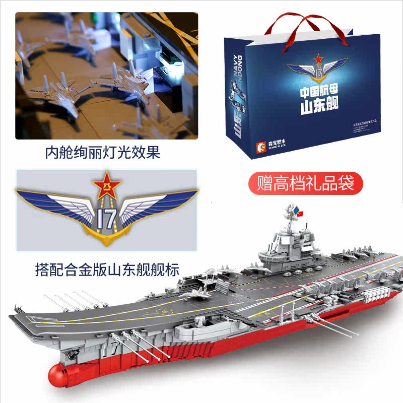 Shandong Ship (Including Gift Bag LED Lights) Classic (Aircraft Carrier Helicopter 6 Aircraft)