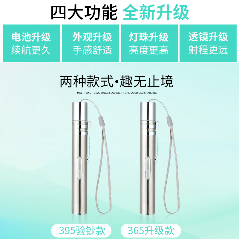 USB Charging Multifunction Flashlight White Light Illumination Laser Infrared Violet Light Banknote Anti-Counterfeit Detection Flashlight