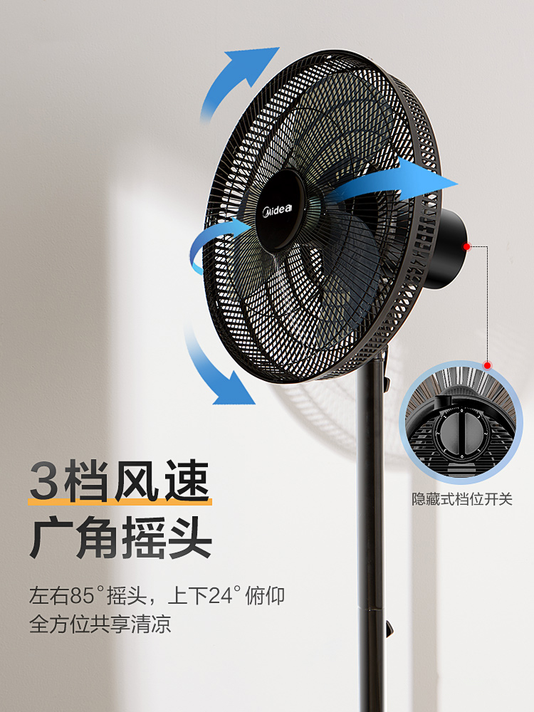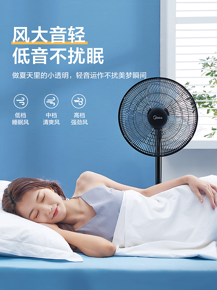 Midea Electric Fan Floor Fan Household Light Sound Table Vertical Big Wind Floor Fan Shaking Head Energy Saving