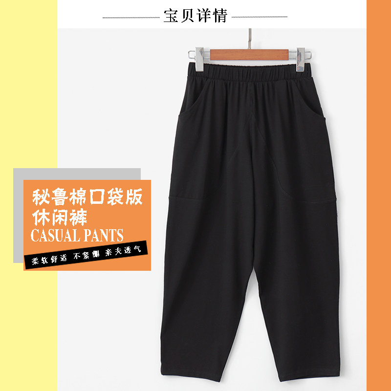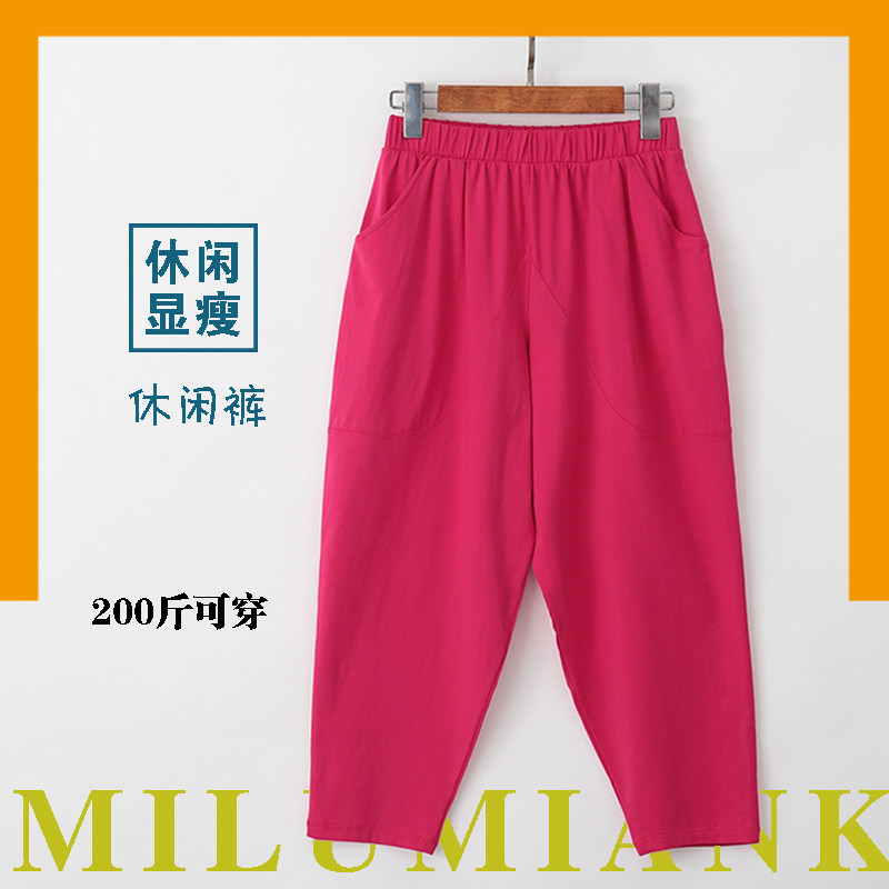 Large size women's pants 200 catties fat MM summer plus fat plus size women's loose high waist thin section eight-point pants radish pants