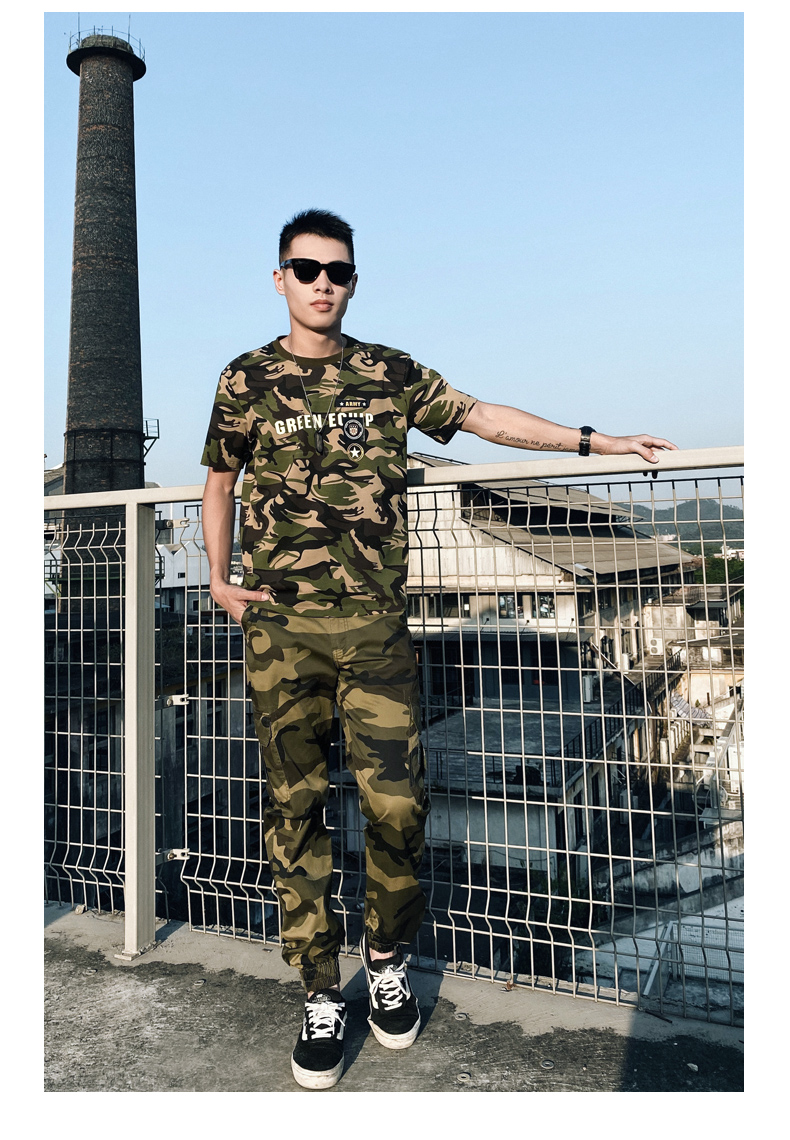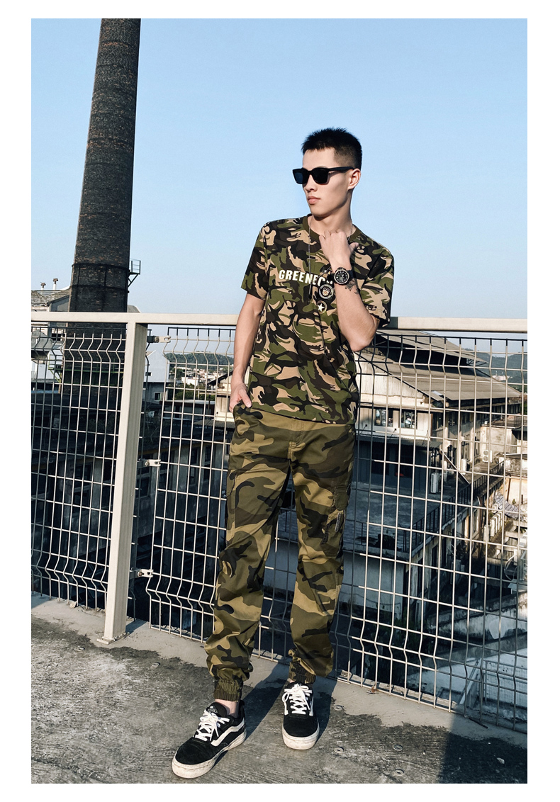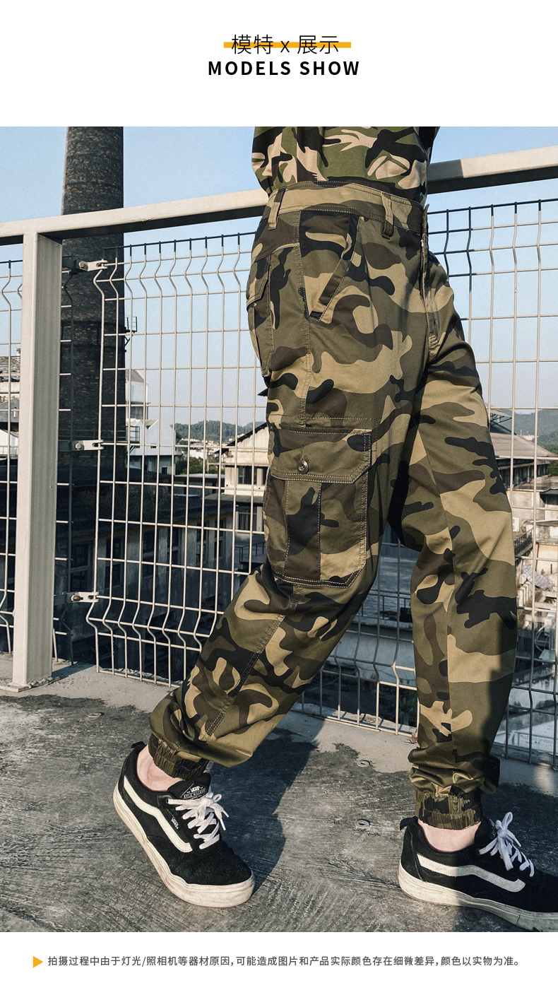 Summer military outdoor casual camouflage pants men's overalls pants bunched feet Tide brand multi-pocket sweatpants men's pants Cotton