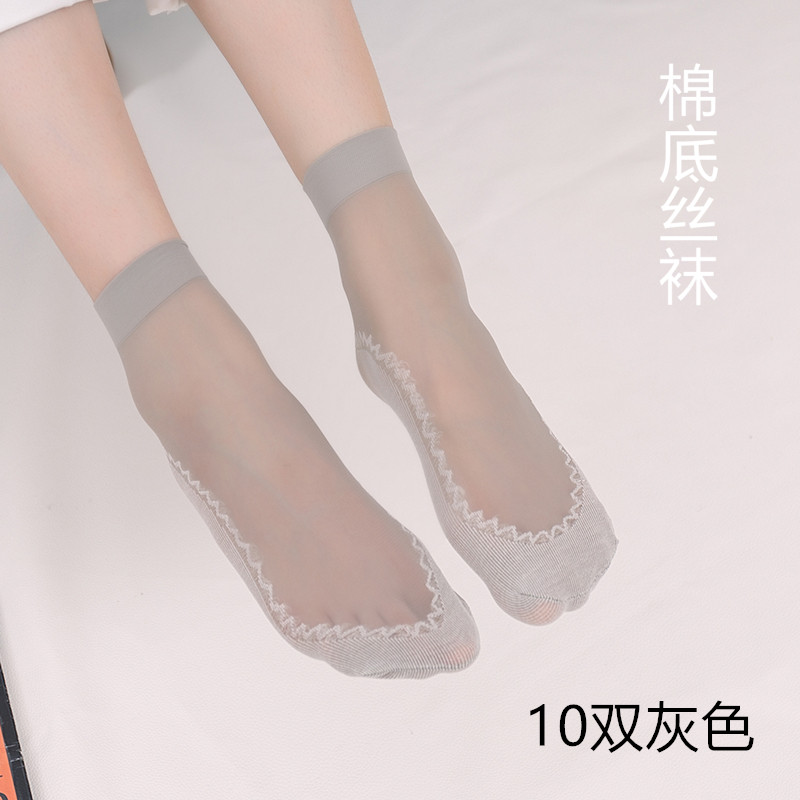 Stockings women's short cotton bottom thickened anti-snag silk black flesh-colored anti-slip anti-odor thin spring and autumn wear-resistant mid-tube socks