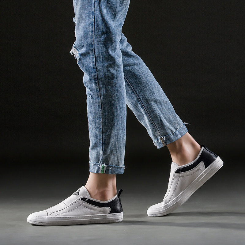 Small White Shoes Men's 2022 Fall Sports Casual Shoes Soft Bull Leather Plate Shoes Men Genuine Leather A Foot foot Shoe Wave Shoes