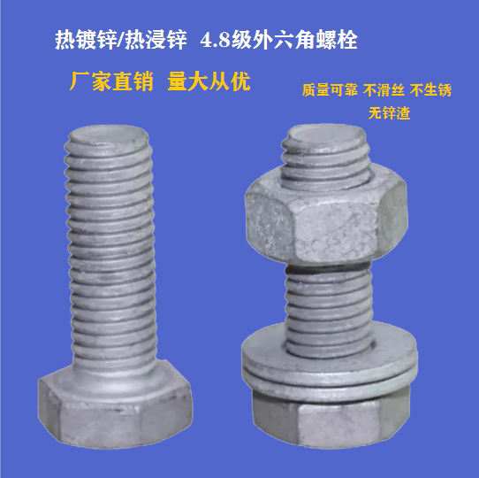 Hot-dip galvanized screw 4 8 grade hot-dip zinc bolt outdoor iron tower M16 * 30 * 50 * 80 series