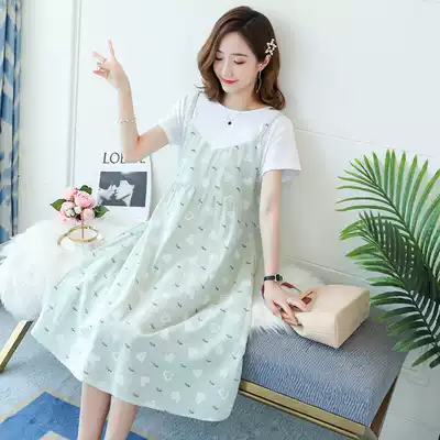 Maternity dress summer 2021 Korean version cotton top summer fashion large size medium and long version floral maternity skirt
