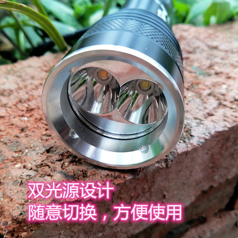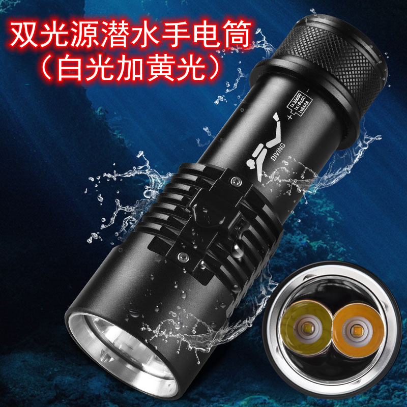 Double light source diving intense light flashlight T6 Yellow light far-shooting anti-desk rescue underwater operation fish pond breeding waterproof