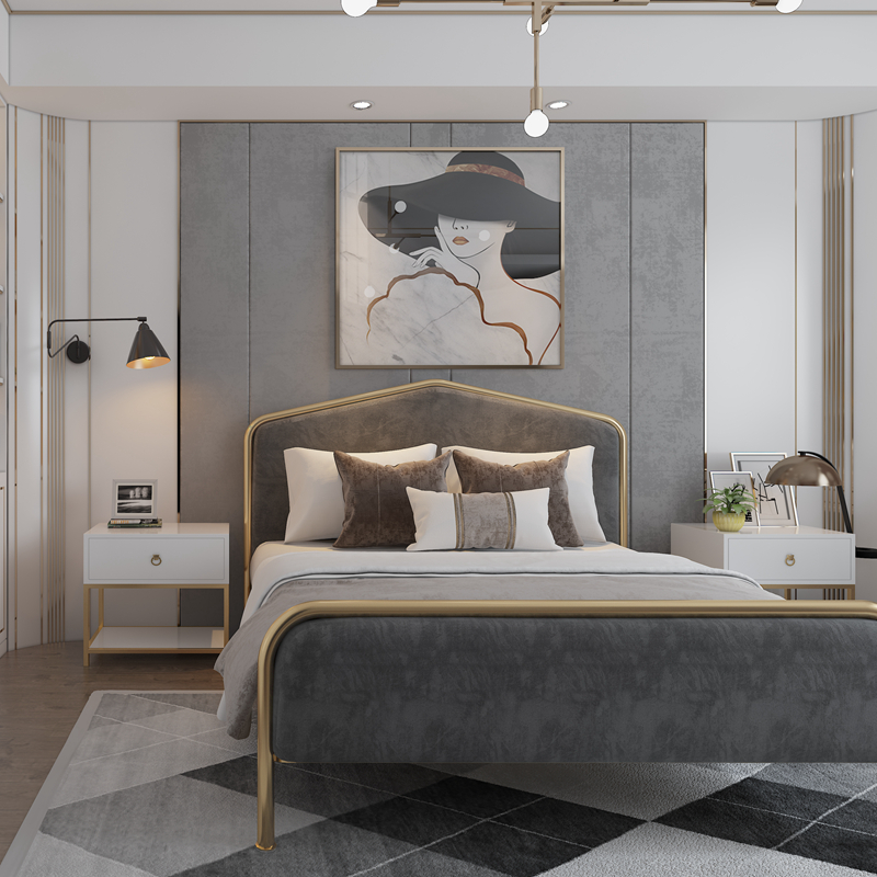 Modern bed minimalist iron bed iron bed frame 1 8 m ins light lavish bed frame Double beds 1 5 Nordic iron frame bed linen