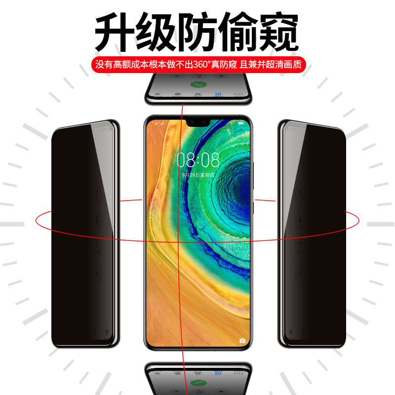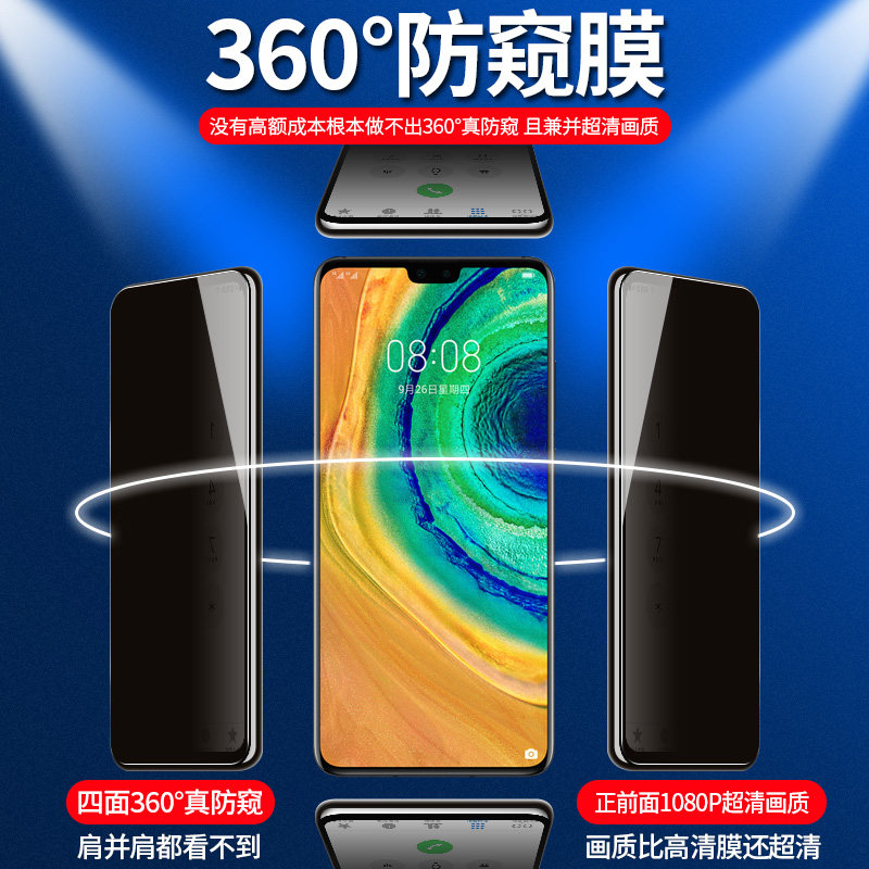 Apply Huawei mate30 steel film 360 degrees anti-peep mate20 anti-peep film all-screen 20X phone all four sides anti-peeking look no white side m30 full package anti-fall Huawei mete20x anti-fall