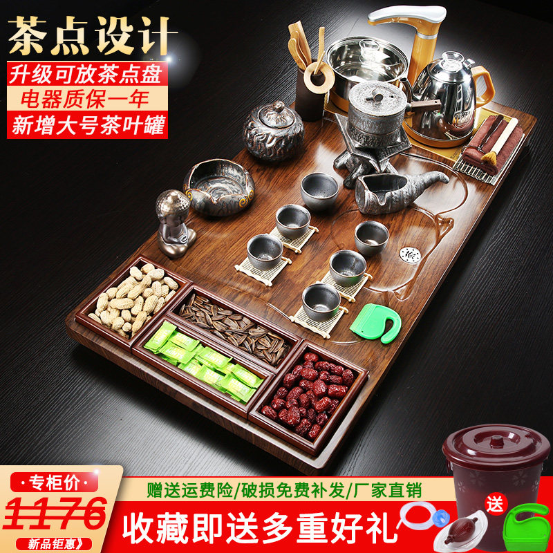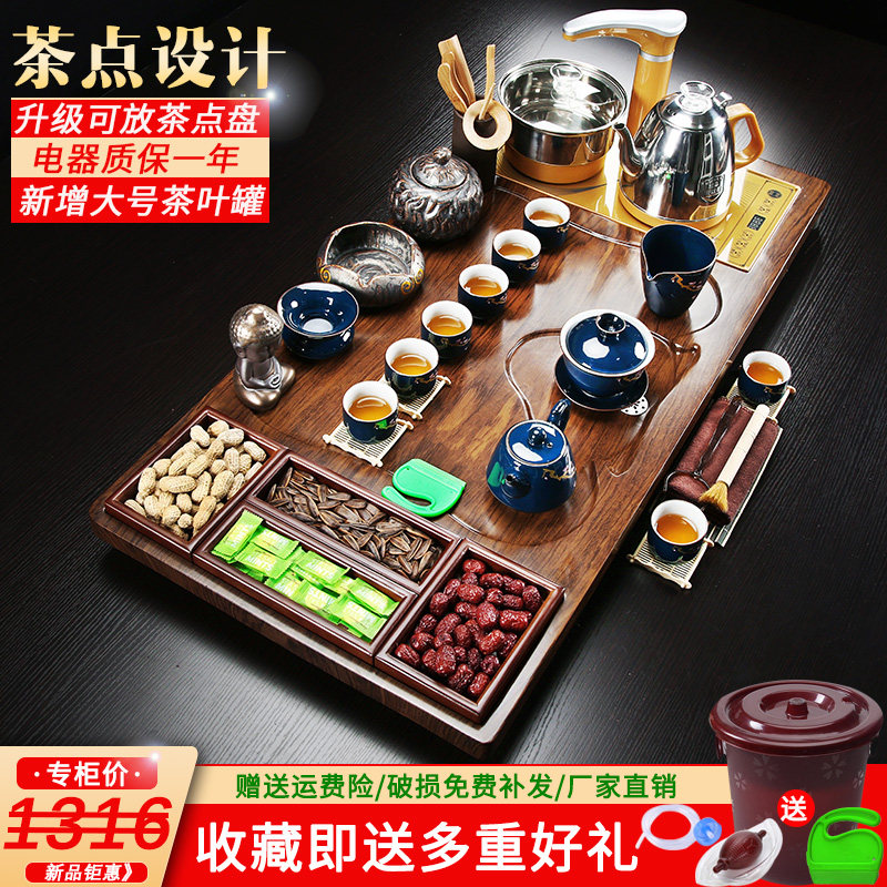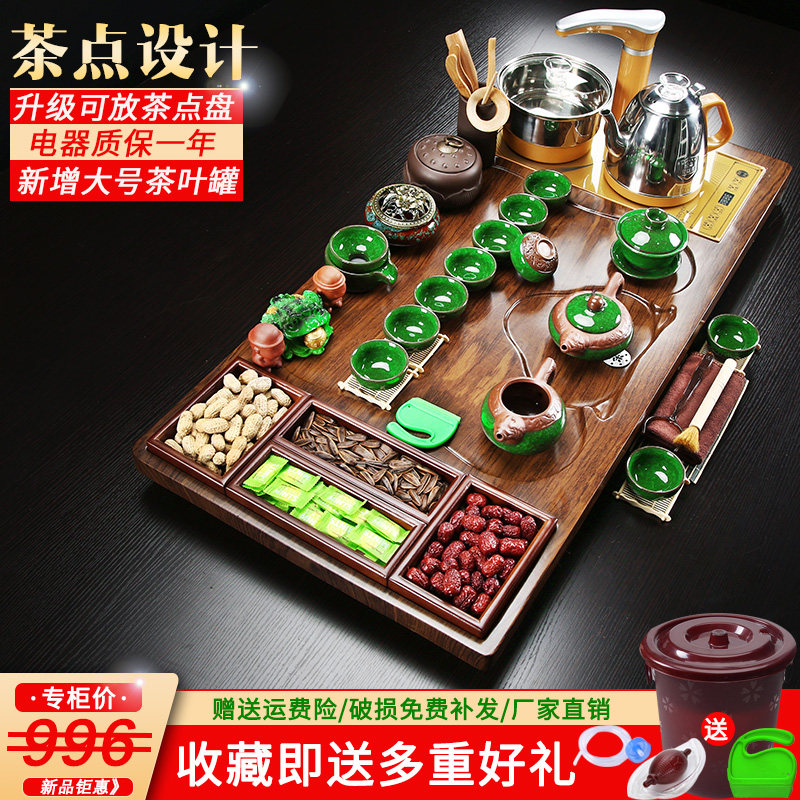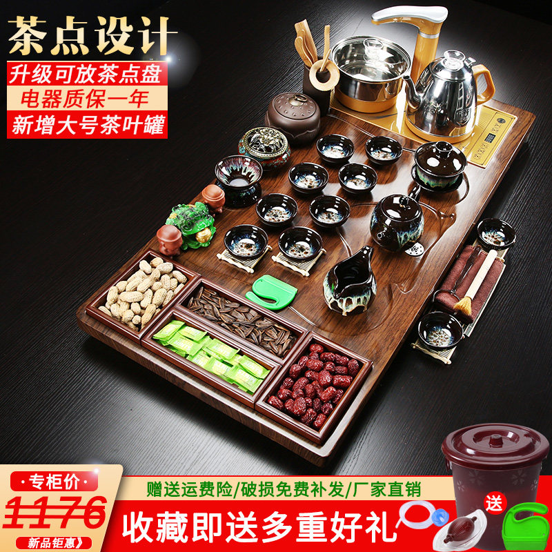 Solid wood whole board tea tray Tea set Automatic one-piece Kung Fu household living room ceramic tea pot Office tea table