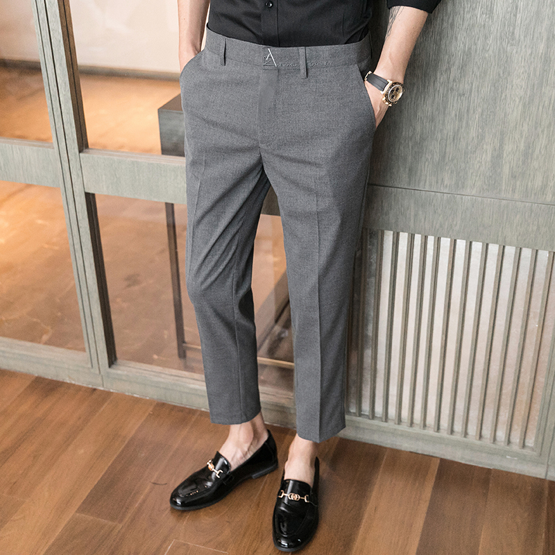 Summer casual pants men nine - point pants Han tide of English wind mens small foot business 9 min embroidered suit pants