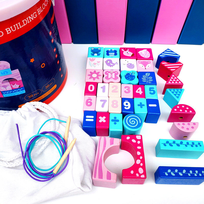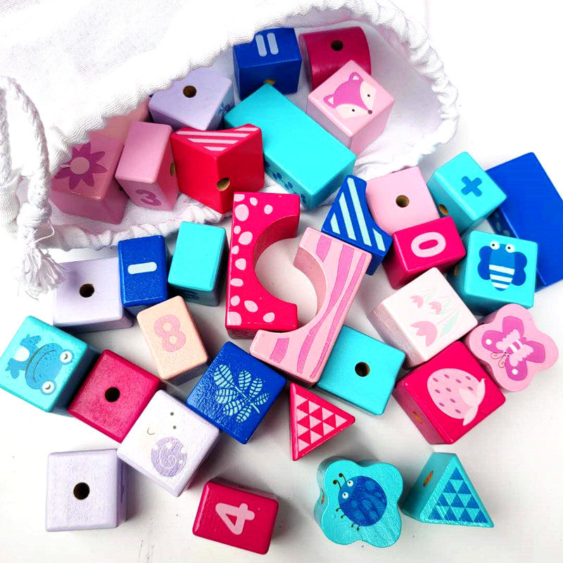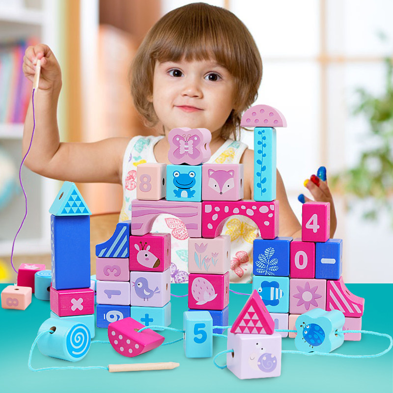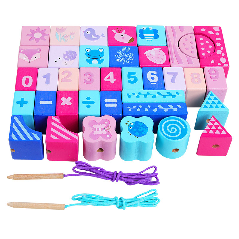 Children's beaded educational toys baby early education wearing rope building blocks concentration training wooden beads 2-3-6 years old