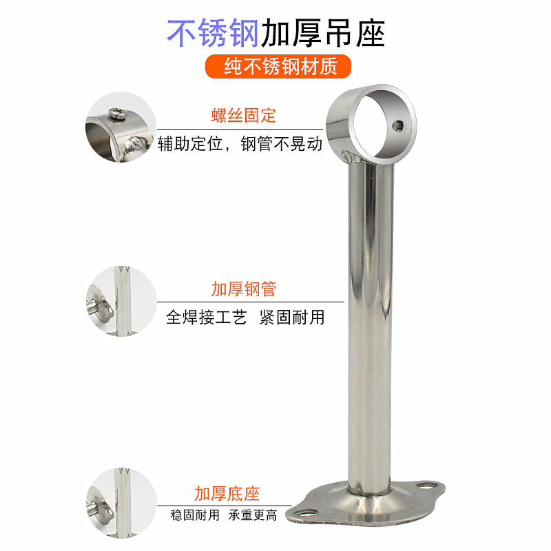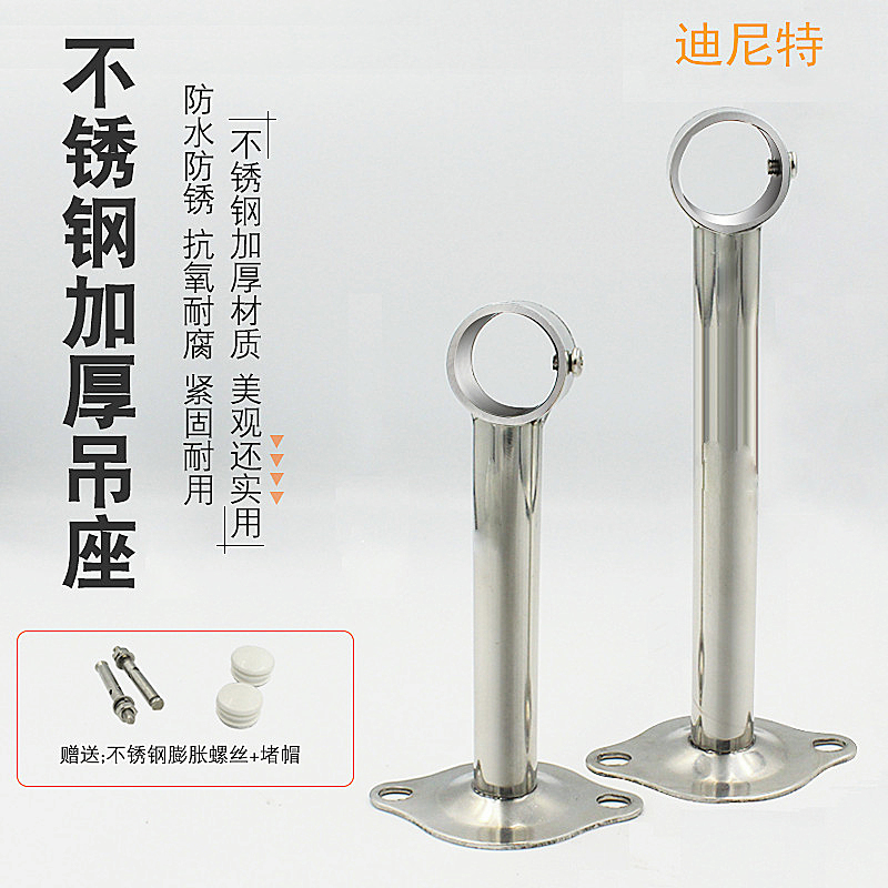 Thickened stainless steel balcony clothes rod hanging seat hanging through the top fixed clothes rod holder extended base hoisting accessories 25
