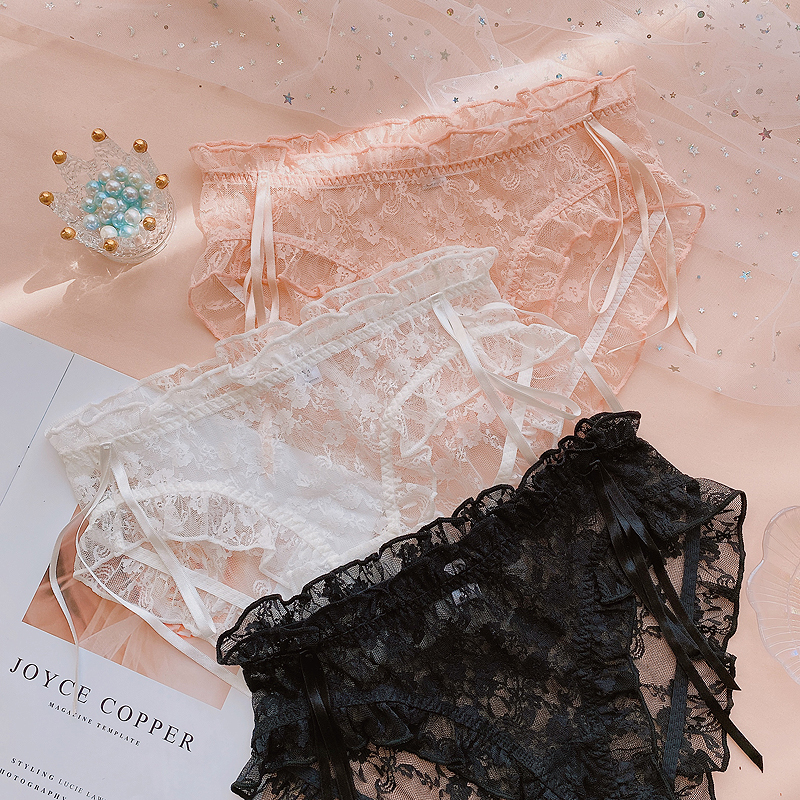 New teenage girl's underpants lace mid-waist ribbon minimalist sweet and sexy female underpants Temptation Shorts Day Ensemble