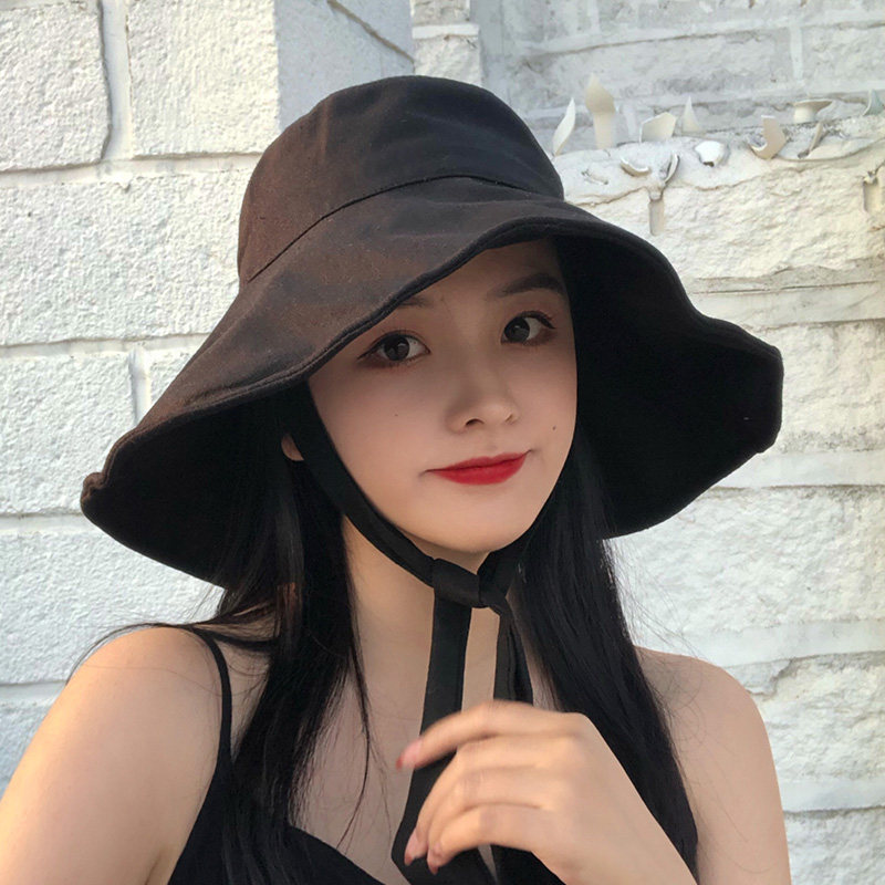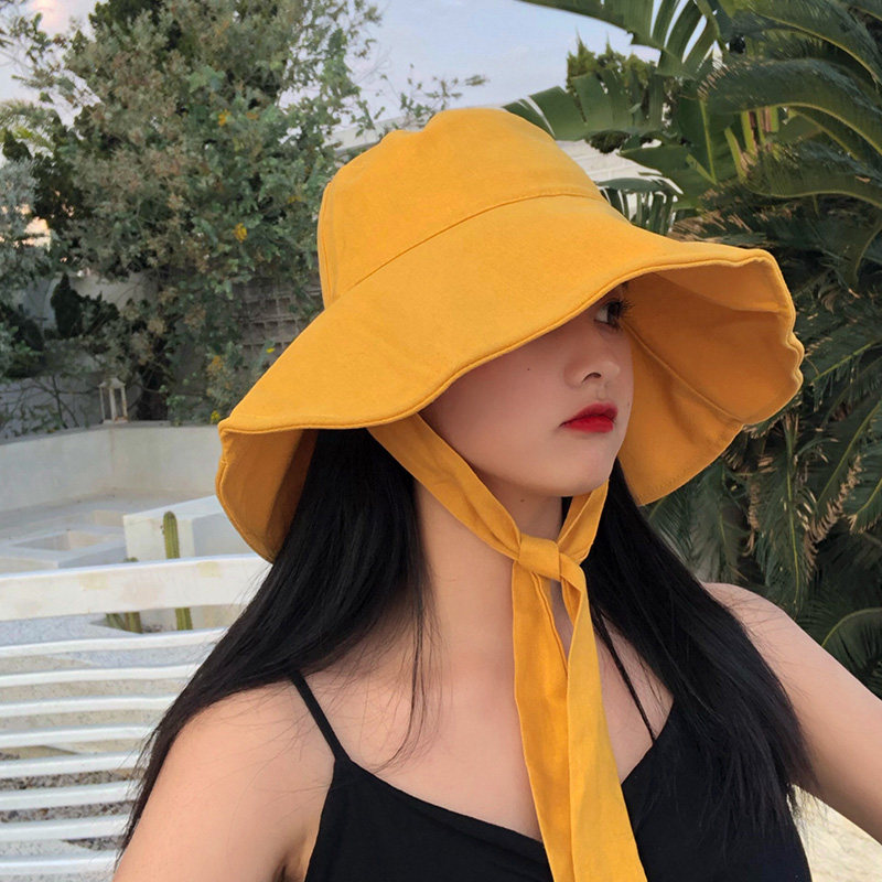 Day Department Pure Color Large Peak Fisherman Hat Lady Spring Summer folding sun hat sunscreen sunscreen hat Han version 100 hitch hat tide