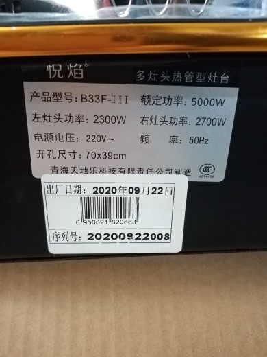 Yueyan Electric Kitchen B33F-111 Phnom Penh (a brand owned by Tiandi Le) Left Flat Plate 2300W Right Concave Plate 2700W