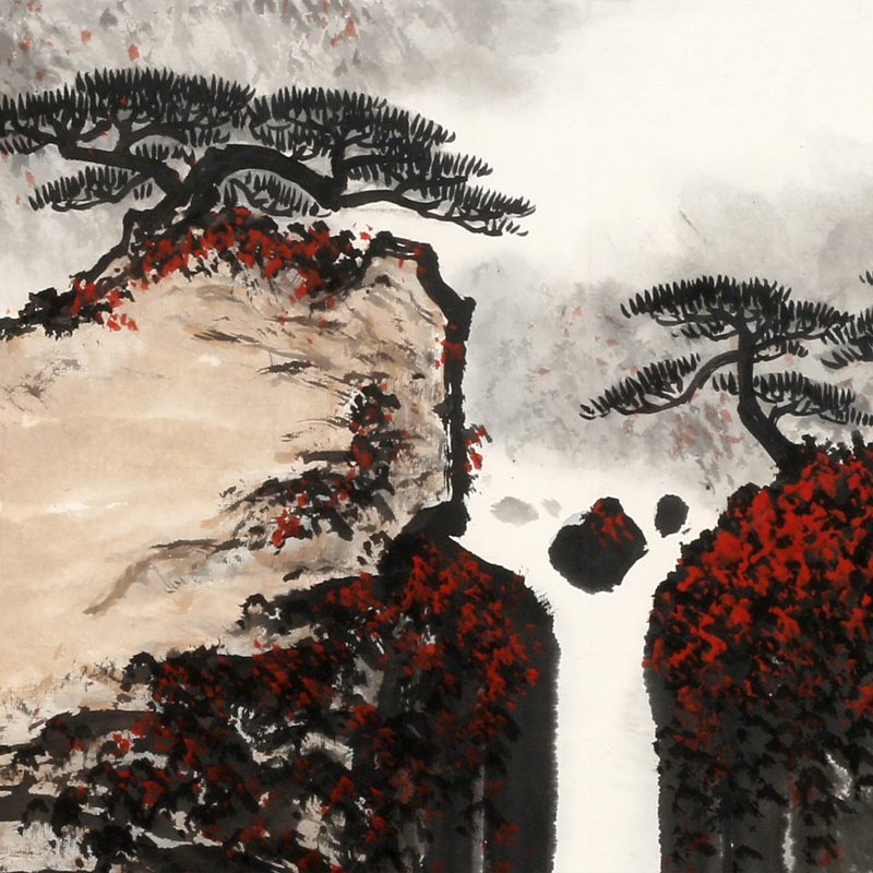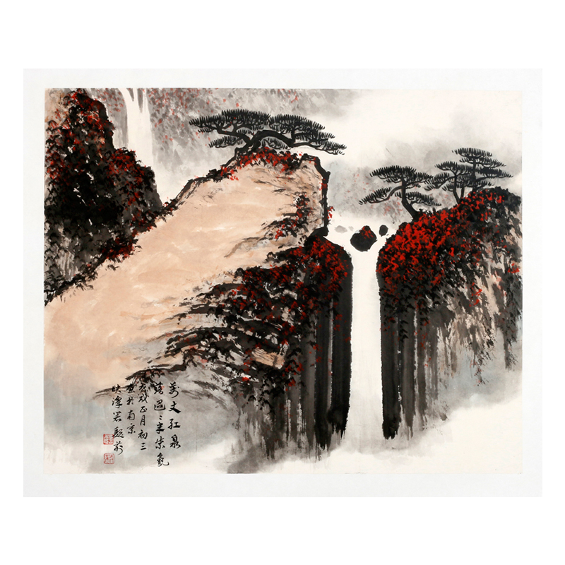 100 off when photographed. Wei Zixi's daughter, Wei Li, "The Red Spring of 1000 feet", a famous hand-painted landscape