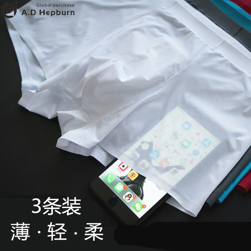 Ice Silk Briefs Male light Genuine Silk Pure color No marks Corner Pants Head Breathable Pure Cotton Thin men's big red Four-corner pants