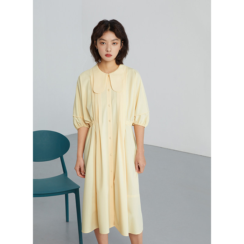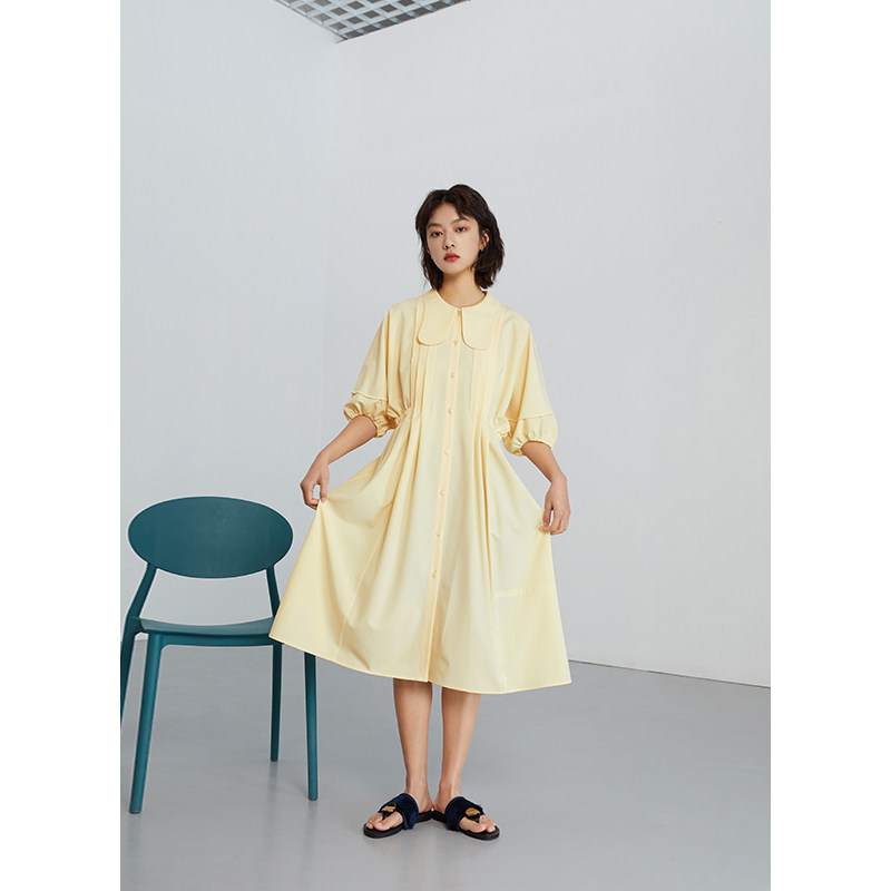 Self-coincidentally small sub-Balloon Magna Dress Woman 2021 Early spring French style Long version of fairy Pale Yellow Dress With Slim First Love Affair