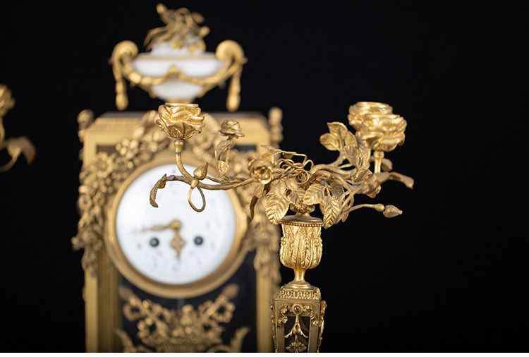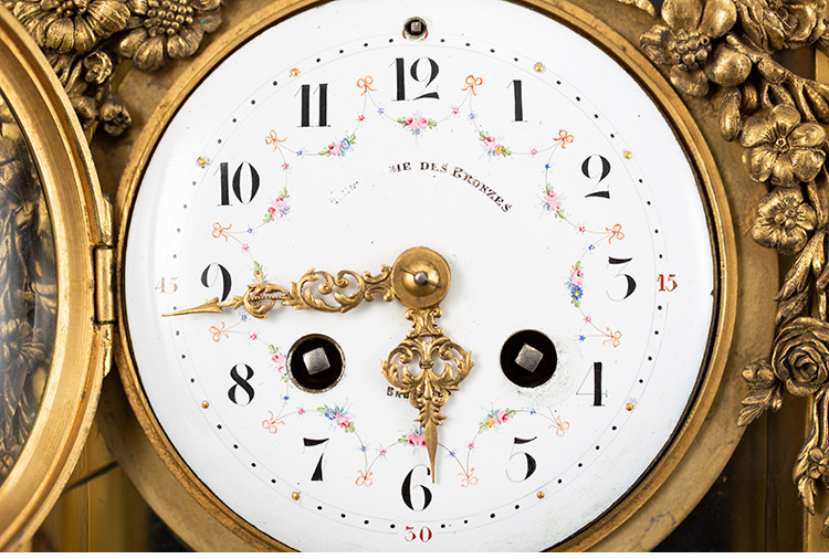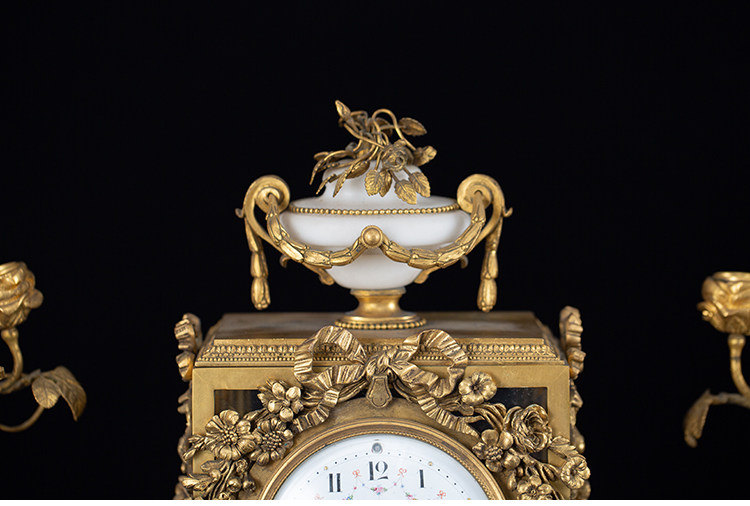 Tim European Antique Western Antiquities French Louis XVI Style Copper Gilt Carrara Marble Clock